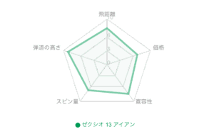 スピン量8/10長番手から短番手まで番手別グルーブ設計によりスピン・止め感にも優れた仕様。